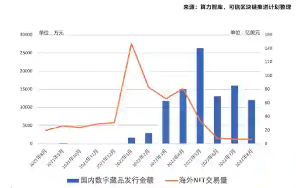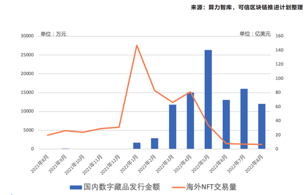 据算力智库数据显示,2021年国内共计发售数字藏品数量约456万份,总发行价值约为1.5亿元。2022年上半年,国内共计发售数字藏品数量约1536万份,总发行价值约为6.53亿元。自2022年5月,国内数字藏品业务增长趋势逐渐放缓,各大数字藏品平台逐渐出现滞销现象,数字藏品发展进入“冷静期”。