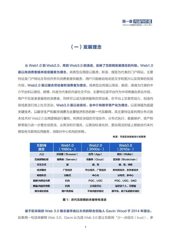 Web3.0是以去信任、去中介和数字资产化为理念,其主要特征是利用分布式账本技术对Web2.0应用逻辑进行重构,利用区块链的可信协作、分布式执行、数据保护、资产转移等能力进一步整合信息流、业务流和价值流,以更加标准化的、更加简洁的链上智能合约来代替现有互联网应用服务,消除对中心机构的依赖。