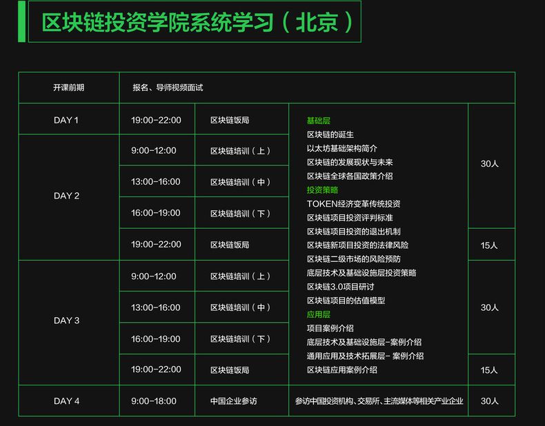 区块链投资学院(BIA)发布的第1期课程,培训时间为3天2夜,每人88888元,后续将逐渐上调。