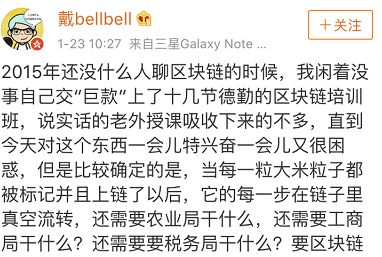 其实现在能挖掘到最早的培训开始于2015年,微博名为“戴bellbell”的网友发微博表示自己曾在2015年还没什么人聊区块链的时候,就“闲着没事”自己交“巨款”上了十几节德勤的区块链培训班,该班是外国讲师授课,但他表示“说实话吸收下来的不多。”