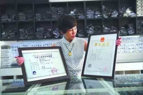 章华妹展示她的第一张个体工商业营业执照