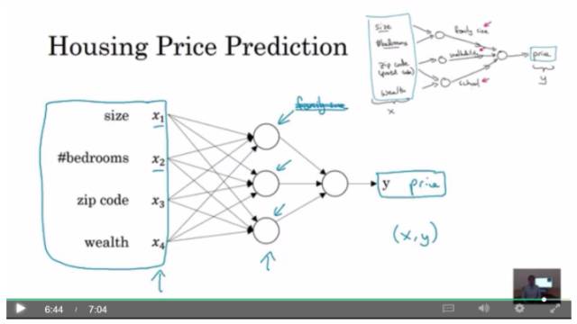 吴恩达从他的经典ML课程的遗漏信息讲起,并介绍了使用单一神经元(逻辑回归)神经网络的想法,并慢慢增加复杂性 - 更多的神经元和更多层。