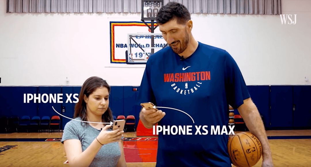 这方面,很少有人做得比《华尔街日报》科技版记者 Joanna Stern 更好。以当前很多科技媒体的套路评判,Stern 的视频 大概都不配称作「评测」,既没有从工程角度讲解加工工艺,也没有摆出数据和图表比较芯片性能,字幕中打出的产品参数已经是其中「技术性」最强的部分了。但 Stern 把时间花在了更有创意的方面上——评测 Apple Watch 时,她把摄像机戴在了头上,以第一人称视角记录下了自己佩戴智能手表从起床、运动、通勤、工作、到休息的一天;在评测 iPhone XS Max 时,她找来了 NBA 球星穆雷桑,以后者的大手戏剧性地演示了这款产品最突出的特征——巨屏;在评测新版 MacBook Air 时,她把视频场景搬到了热气球上,不仅呼应了产品的名称,还巧妙地通过「一趟热气球旅行中的耗电量」来演示这台电脑的电池续航。
