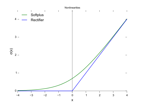softplus函数的导数是logistic函数。ReLU和Softplus在很大程度上是相似的,除了接近0(零)时,softplus更加平滑且可微的。计算ReLU值及其导数比softplus函数更容易和高效,因为softplus的公式中包含log(.)和exp(.)计算。