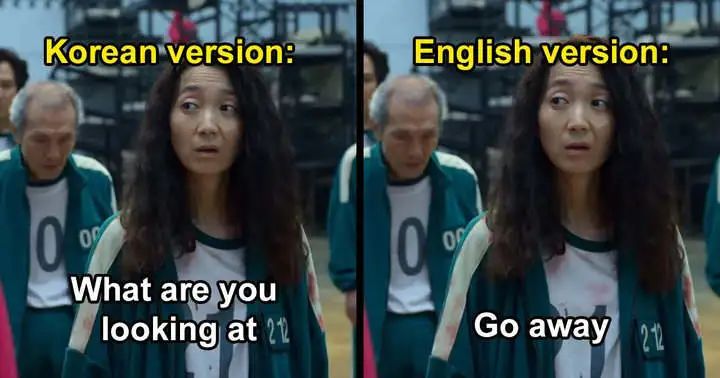 就比如说,当女演员用韩语表示「看什么看」,Netflix 的英文字幕翻译为「走开」。