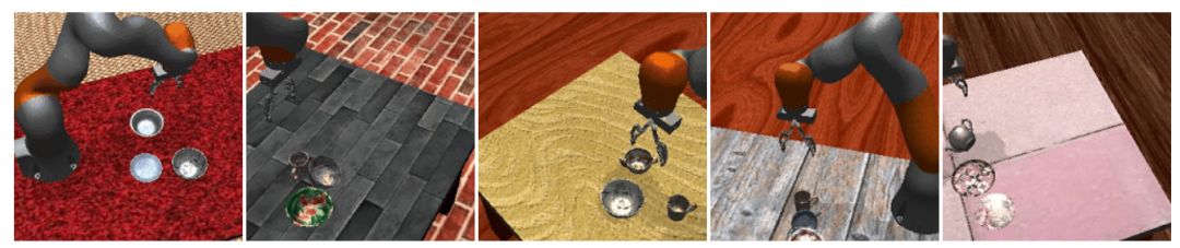 为了学习足以迁移到未知环境的视觉鲁棒特征,研究人员使用了 Sadeghi 与 Levine 在 2017 年提出的域随机化技术(即模拟随机化),它可令机器人完全在模拟环境中学习基于视觉的策略,并可以推广到现实世界。该技术在诸如室内导航、物体定位、拾取和放置等多种机器人任务上效果良好。此外,为了学习像自校准这样的复杂行为,研究人员利用模拟能力生成合成示例,并结合强化学习目标来学习鲁棒的机械臂控制器。