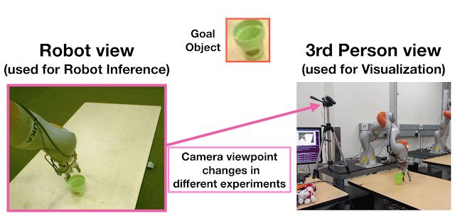 使用模拟的 7 自由度机械臂实现视觉指示目标的视点不变操作。新方法学习了一种单一策略,可以通过不同相机视角捕捉的感官输入实现不同的目标。