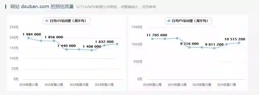 如今,豆瓣的日均UV是200万多一些,而微博为一亿多——5年过去,创办于2005年的豆瓣与2009年才开始发展起来的微博之间,前者在日均UV上要比后者差了50倍都不止——如今豆瓣的日均UV只是微博的零头的零头。