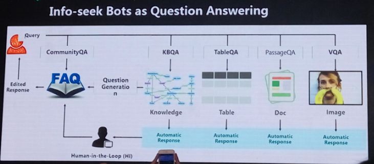 由于支持的问答来源不同,故而问答引擎中包含了涉及的问答来源的问答引擎。首先是communityQA,用来解决FAQ(常见问题问答集)的query;KBQA是基于知识库的问答,需要提前构建好知识库(比如,三元组的);TableQA是基于结构化数据的问答,从表中查询问题和答案;passageQA是基于非结构化文本的问答,里面涉及到文本分析、知识抽取、自然语言处理、自然语言理解的功能,试图从文本/文档中获取query的答案;VQA是基于视频/图像的问答,答案来源于视频或图像。