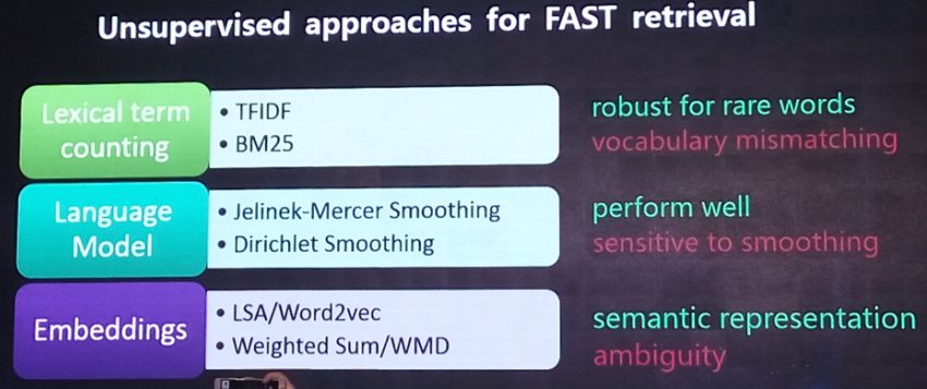 最后一层使用Embedding,采用了LSA/word2vec和腾讯知文自己提出的Weighted Sum/WMD方法,以此来表示语义层面的近似,但是也同样引发了歧义问题。