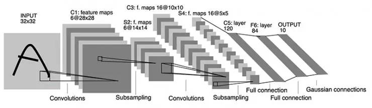 1998 年。LeCun 乐春大神发布了 LeNet 网络架构,从而揭开了深度学习的神秘面纱。从 1998 年开始,深度学习这一领域就开始不断地被人们所熟知,也是因为这个网络架构,不断地推动着深度学习这一领域。当然啦,为什么不叫 LeNet 而叫 LeNet5 呢,因为 Yann LeCun 经过了很多次反复的试验之后的结果,同时也因为有 5 个卷基层因此以 lenet5 命名!