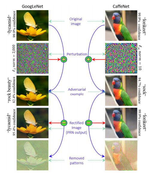 尽管深度学习在很多计算机视觉领域的任务上表现出色,Szegedy et al. [22] 第一次发现了深度神经网络在图像分类领域存在有意思的弱点。他们证明尽管有很高的正确率,现代深度网络是非常容易受到对抗样本的攻击的。这些对抗样本仅有很轻微的扰动,以至于人类视觉系统无法察觉这种扰动(图片看起来几乎一样)。这样的攻击会导致神经网络完全改变它对图片的分类。此外,同样的图片扰动可以欺骗好多网络分类器。这类现象的深远意义吸引了好多研究员在对抗攻击和深度学习安全性领域的研究。