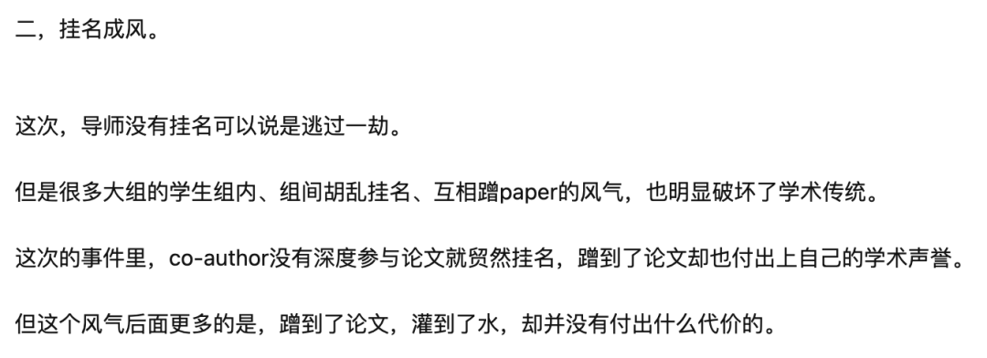 在此前的学术不端事件中,知乎答主「Summer Clover」就曾指出,现在的paper不仅从灌水变成了抄袭和洗稿,而且还时常出现「挂名成风」的现象。