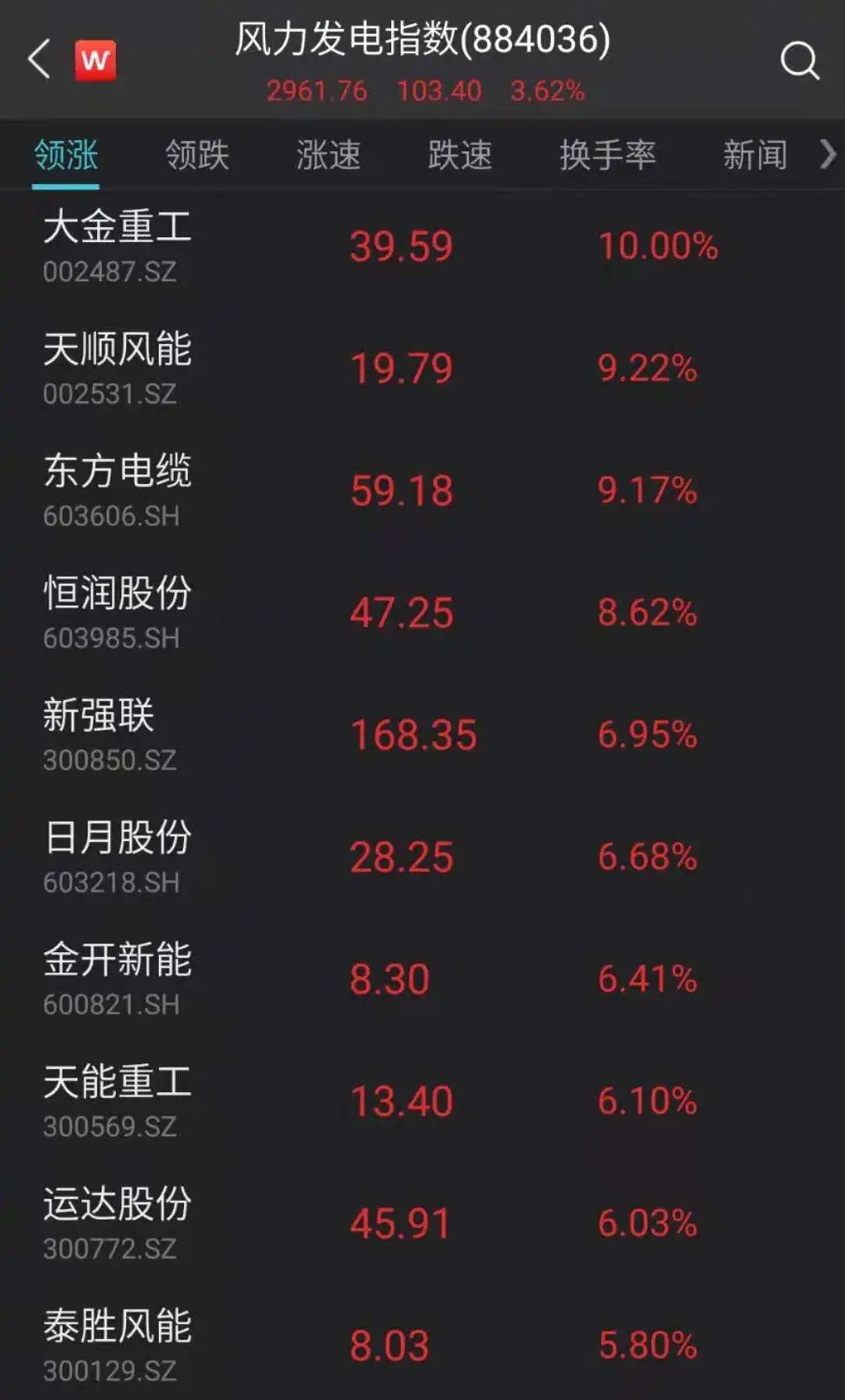 风电股全线拉升,东方电缆、大金重工涨停,东方电缆、中天科技等跟涨。