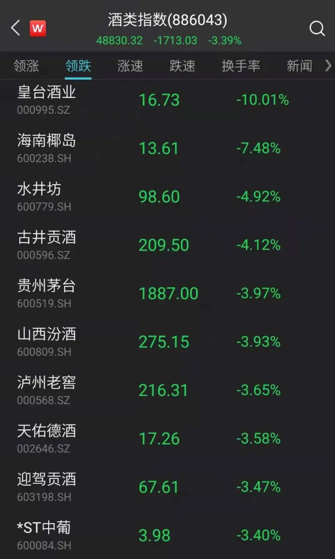 白酒股尾盘则持续低迷,贵州茅台一度跌逾4%。