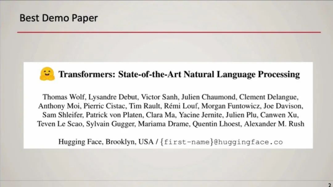 此外,EMNLP 2020 还颁发了最佳 demo 论文,获奖团队是大家非常熟悉的 Hugging Face。