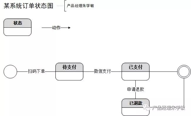 以某共享充电移动端为例,客户完成扫码充电的订单对象的生存期间的状态序列,引起转移的事件,以及因状态转移而伴随的动作。从扫码充电订单状态从待支付,已支付到已退款都是一个完整的业务闭环。但实际应用中并不是所有的类都需要画状态图,有明确意义的状态,在不同状态下行为有所不同的类才需要画状态图。