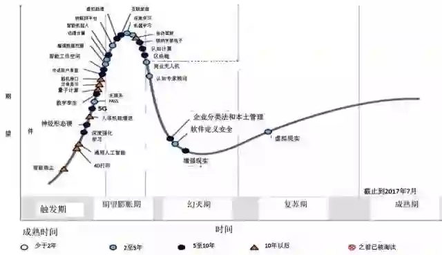不久前,信息技术研究公司Gartner发布了2017年度“新兴技术成熟度曲线”(The Hype Cycle),这是用来评估新科技可见度的一种工具, 也是技术企业投资决策的重要风向标。