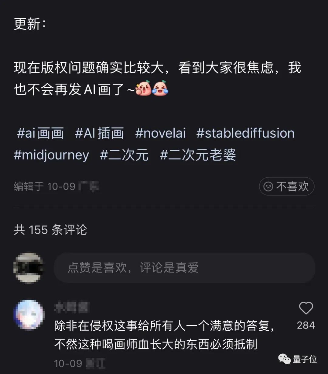 尤其上周,一个名为NovelAI的生成模型,因涉嫌使用未经授权的图片做训练数据,引发不少二次元画师不满与抵制,从微博、知乎,到小红书,不少人都参与其中——