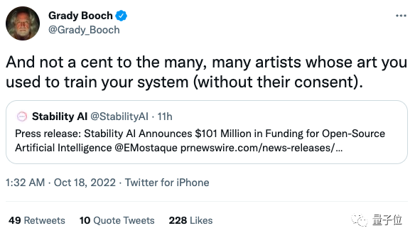 上文提到的备受AI绘画冲击的艺术家Rutkowski就认为,在世的艺术家应该被排除在训练数据之外。