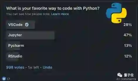 Python方面,Jupyter、VSCode更受人们欢迎。