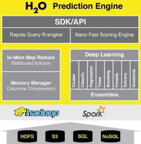 H2O是一个开源的预测分析平台。H2O用户可以轻松地从微软Excel和RStudio中探索和建模大数据,并将其与来自HDFS,S3,SQL和NoSQL数据源的数据连接起来。H2O讲述了数据科学的语言,支持R,Python,Scala,Java和强大的REST API。业务应用程序由H2O的NanoFastTM评分引擎提供支持。包括:分布式算法和回归树,如GBM,随机森林(RF),广义线性模型(GLM),k-均值和主成分分析(PCA)。