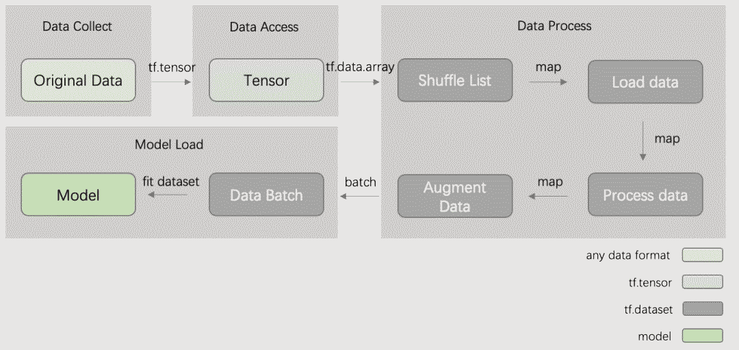 tfjs 提供了 Dataset API, 可以对数据进行抽象,为数据封装了简单高效的接口,同时可以进行批数据处理。Dataset API 的数据流的方式也可以和 pipcook 管道的方式高效结合。