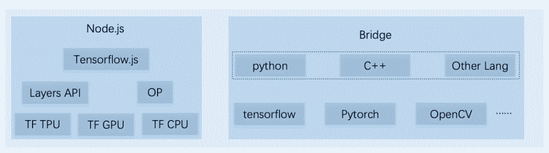 TensorFlow.js 分成低阶与高阶两组 API。低阶的 API 是由 deeplearn.js 衍生,包含搭建模型所需要的 operator (OP),负责处理一些低阶如线性代数的数据运算等等,来协助我们处理机器学习中的数学运算部分。而高阶的 Layers API 则是用来包装一些常用的机器学习的算法,同时允许我们载入训练好的模型,像是由 Keras 学习的模型等等。