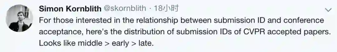 Twitter网友Simon Kornblith自制了接收论文ID结果分布图: