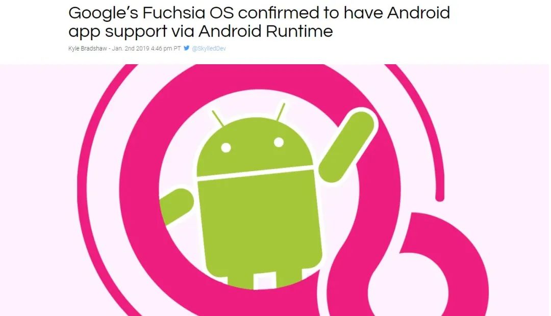 谷歌身为安卓掌门人,对于“Fuchsia OS 取代安卓”的说法从未表态。不过在 2019 年 1 月,曝光的代码显示,谷歌将通过 Android Runtime 为 Fuchsia OS 提供安卓应用兼容,表明谷歌不会那么快抛弃安卓。
