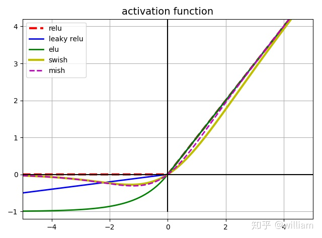 在 YOLO V5中,中间/隐藏层使用了 Leaky ReLU 激活函数,最后的检测层使用了 Sigmoid 形激活函数。而YOLO V4使用Mish激活函数。