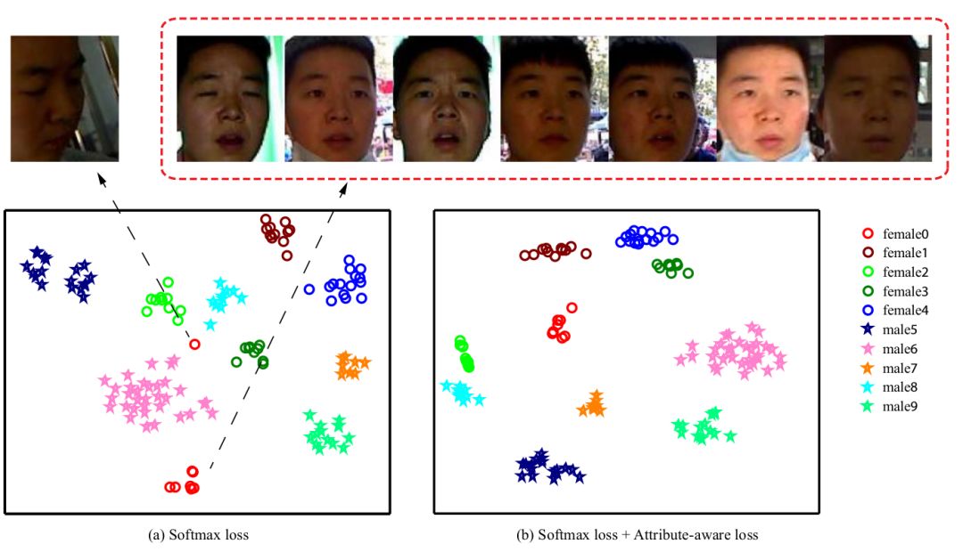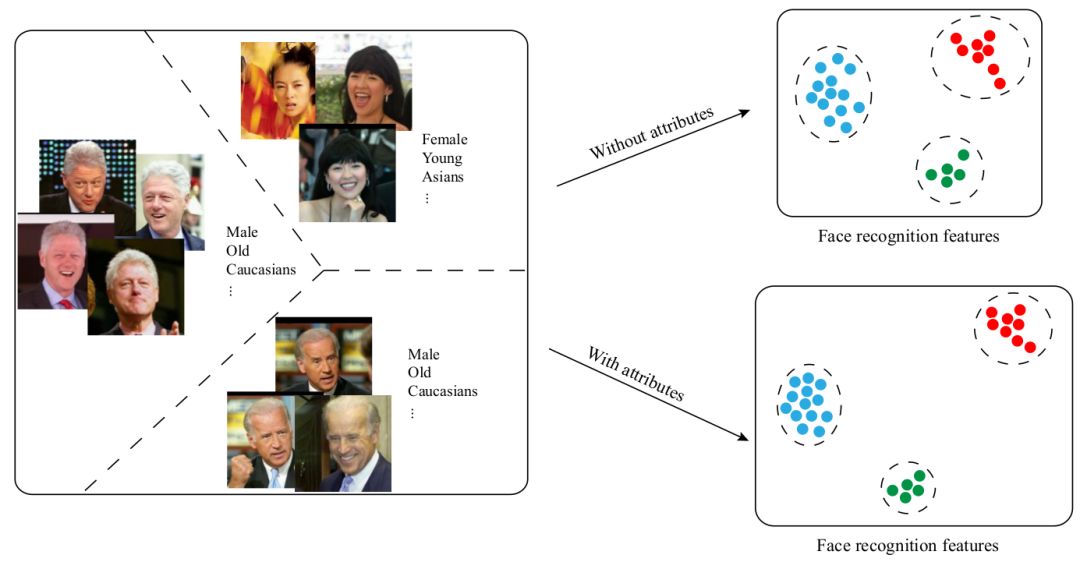 (图3. 在人脸识别中引入属性信息改善人脸特征学习过程)