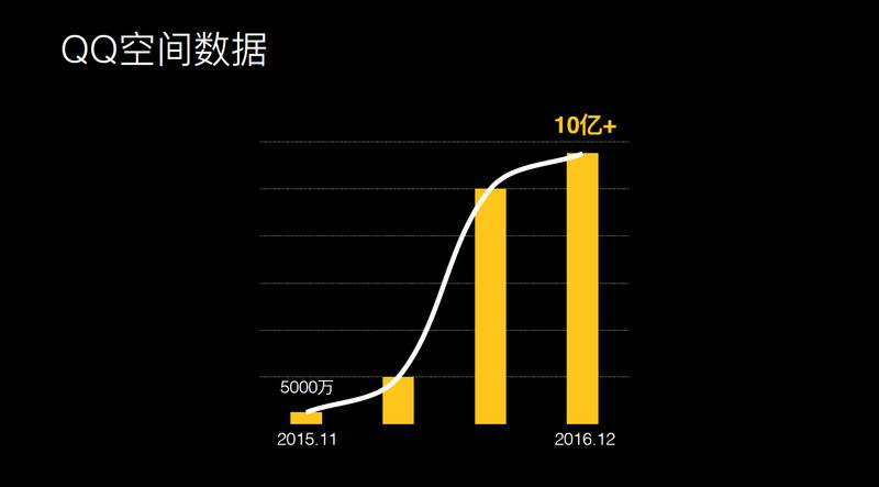 QQ 空间也在这个风口中,从 2015 年 11 月份的每天 5000 万视频播放量,经过一年的耕耘细作,徒增到 2016 年 12 月份的 10 亿量级,现在还在不断增长。