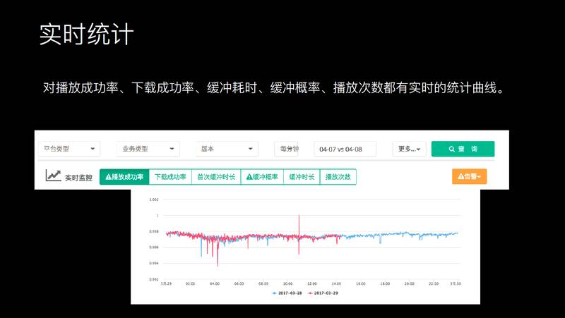 成功率统计,外网用户播放视频的成功率是多少?还要通过实时报警,才能及时知道外网发生一些故障。