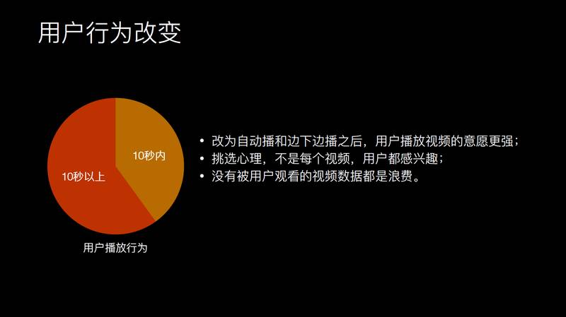 我们也分析这个过程中的原因,发现因为改为边下边播之后用户观看视频的意愿比较强,用户有挑选心理,不是每个视频都去看,看了一下之后不喜欢就划走了,之前下载的那部分其实是浪费的。