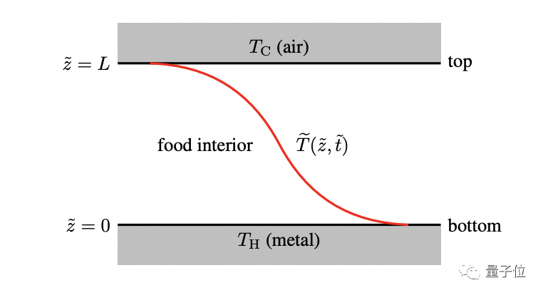 烤制过程中,肉饼的厚度设定为z˜=0到z˜=L,温度变化满足热方程Te t˜= κTez˜z˜,0 < z < L,˜ t >˜ 0。