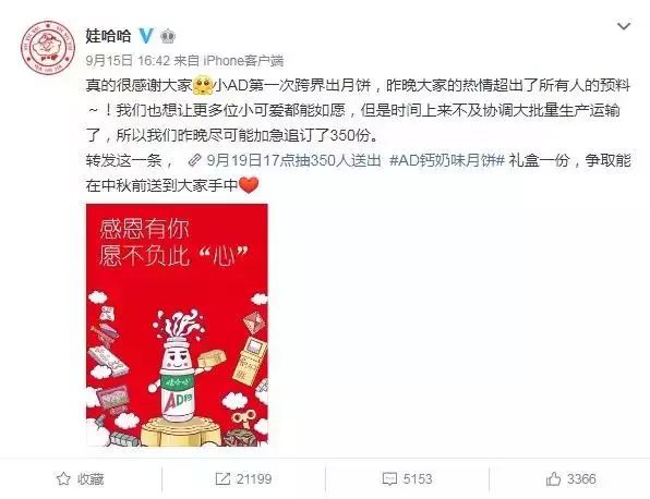 娃哈哈也出了AD钙奶口味的月饼,娃哈哈表示