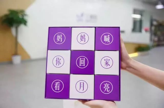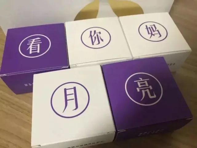 这次他们出的月饼被称为今年最火的月饼,每个盒子上都写着一个字,分别是“妈妈喊你回家看月亮”。