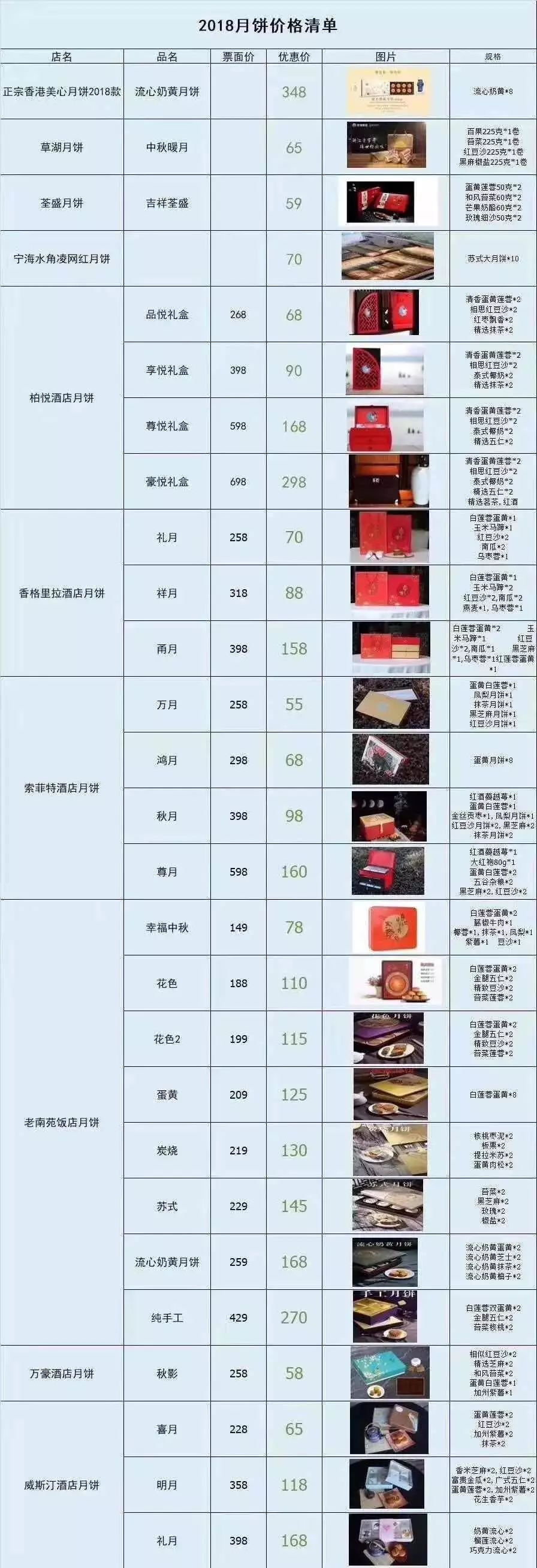 在这张“2018月饼价格清单”上,很多知名酒店的月饼都包含其中,折扣从2折到8.3折不等。