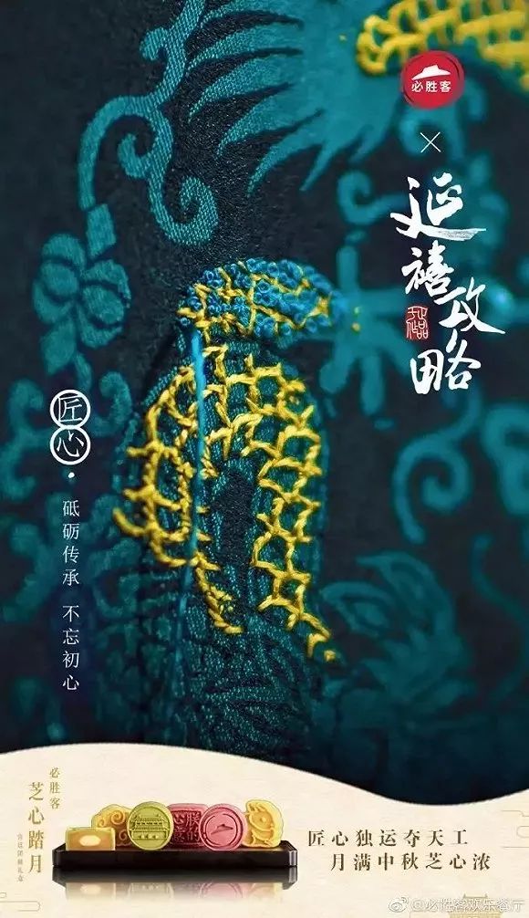 例如,故宫玩起了“延禧风”,和必胜客欢乐餐厅联手打造出了“芝心踏月”月饼礼盒。