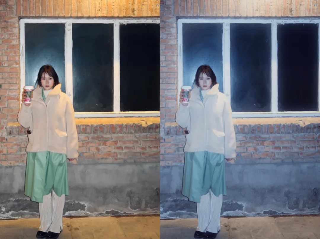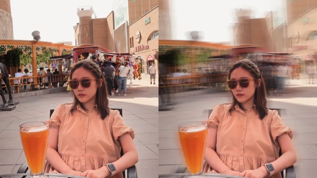 这个特效完美解决了背景杂乱的问题,模拟相机慢快门的拍摄技巧,会有一种电影中人流、车流熙熙攘攘、来来往往的故事感。