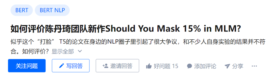 自BERT以来,大多数人坚持的模型训练15% mask rate惯例被打破了?