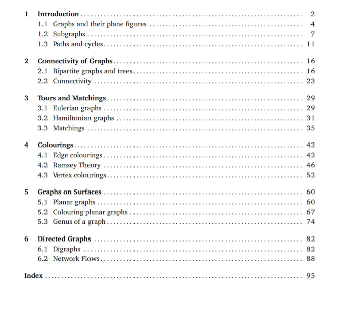 这些是图论的入门讲义。内容包括 绪论(图及其平面图形、子图、路径和循环); 图的连通性;色素;图曲面;有向图。