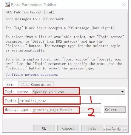 Topic为/simulink_pose,与ROS中的listener节点的话题名字对应 Message的类型与listener节点的消息类型对应