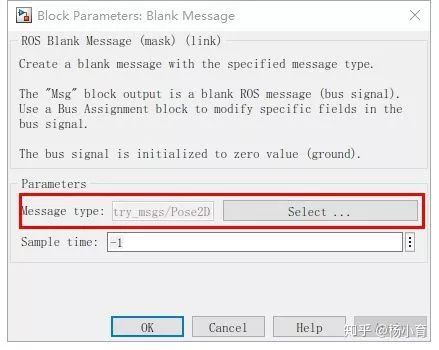 从Simulink library browser中的ROS工具箱添加空白消息模块blank message,该模块用于创建ROS消息,并双击进行参数设置