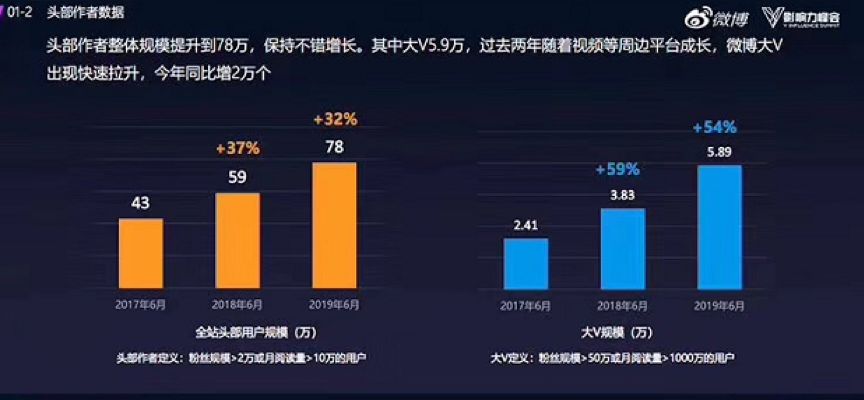 与此同时,网红团体本身数量也越发庞大。截至2019年 6 月,微博头部作者规模扩大到 78 万,与去年同期相比增长32%。粉丝规模大于50万或月阅读量大于1000万的微博大V 5.9万个,同比增长54%。快速拉升的数字下蕴含巨大网红经济潜能。