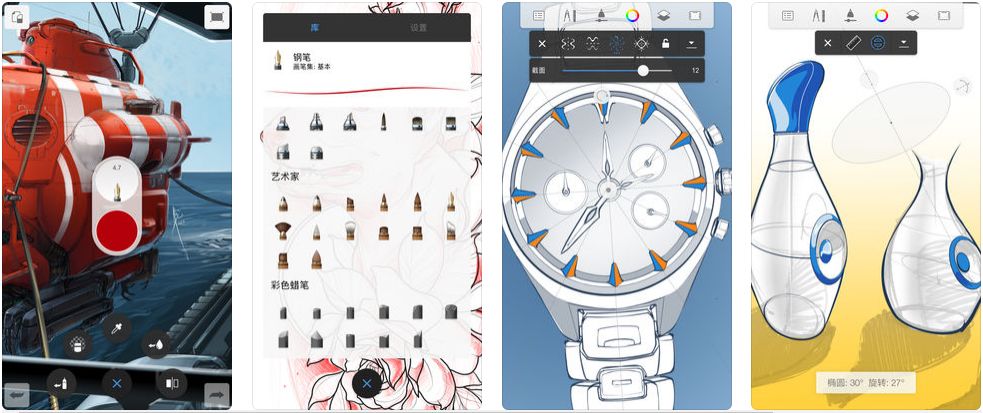 从专业设计角度来说,Autodesk SketchBook 能够导入素材图片,也拥有图层、复制图层等功能。设计人员可以通过平板、智能手机这类轻量化的终端设备完成其他同事提交的需求,触屏的操作模式与图像制作不能说绝配也可以说是一个不错的搭配,无论设计人员身处何地,都能够及时完成需求并提交。