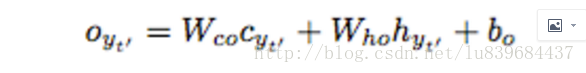 第一个部分表示attention context vector对decoder输出的影响,由于context是从input计算得来的,可以理解为encoder的每个输入对decoder输出的影响;第二个部分表示decoder当前隐藏层最后一层对输出的影响;第三个部分表示偏置项。