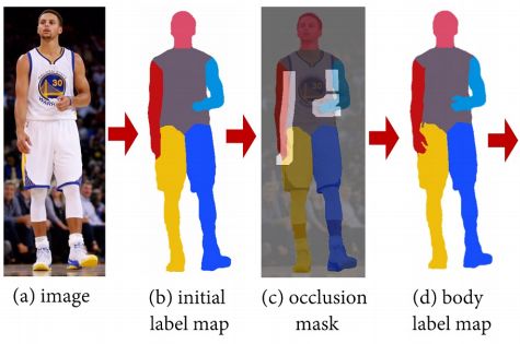 好了,到了这里知道了如何把2D的变形映射到3D蒙皮的变形,也知道要利用3D蒙皮降维到2D进行warp,最后的工作就是重复这个操作优化3D蒙皮。在2D上做对齐变形还有许多小技巧,包括防止影响人体肢体运动(闭塞锁)而做的肢体label等等David在这里就不一一赘述了: