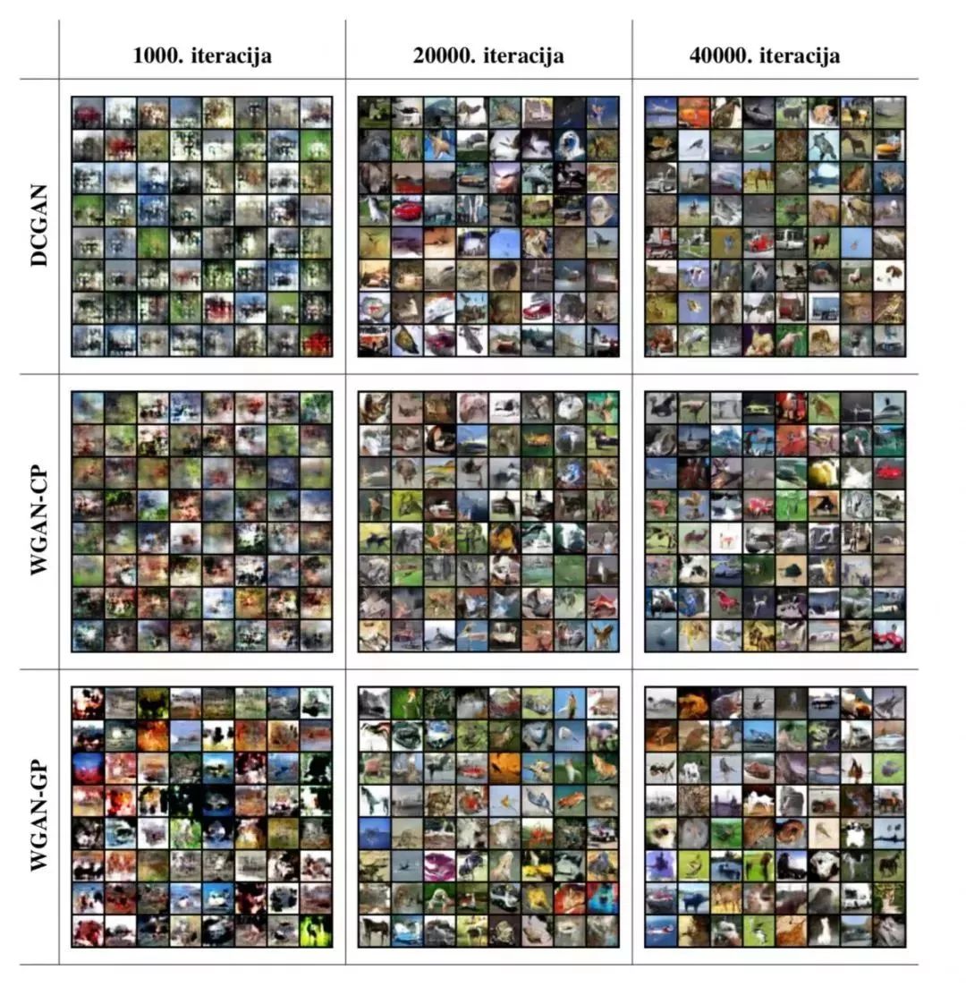 △三种不同的方法生成对抗网络WGAN-GP、WGAN-CP、DCGAN对cifar数据集的效果测试效果图